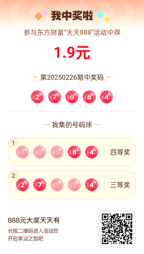 第20250226期天天888活动共1557人中奖,名单如下,请中奖用户在今日15:10前前往活动页面点击【立即领奖】按钮领奖,逾期奖励失效。