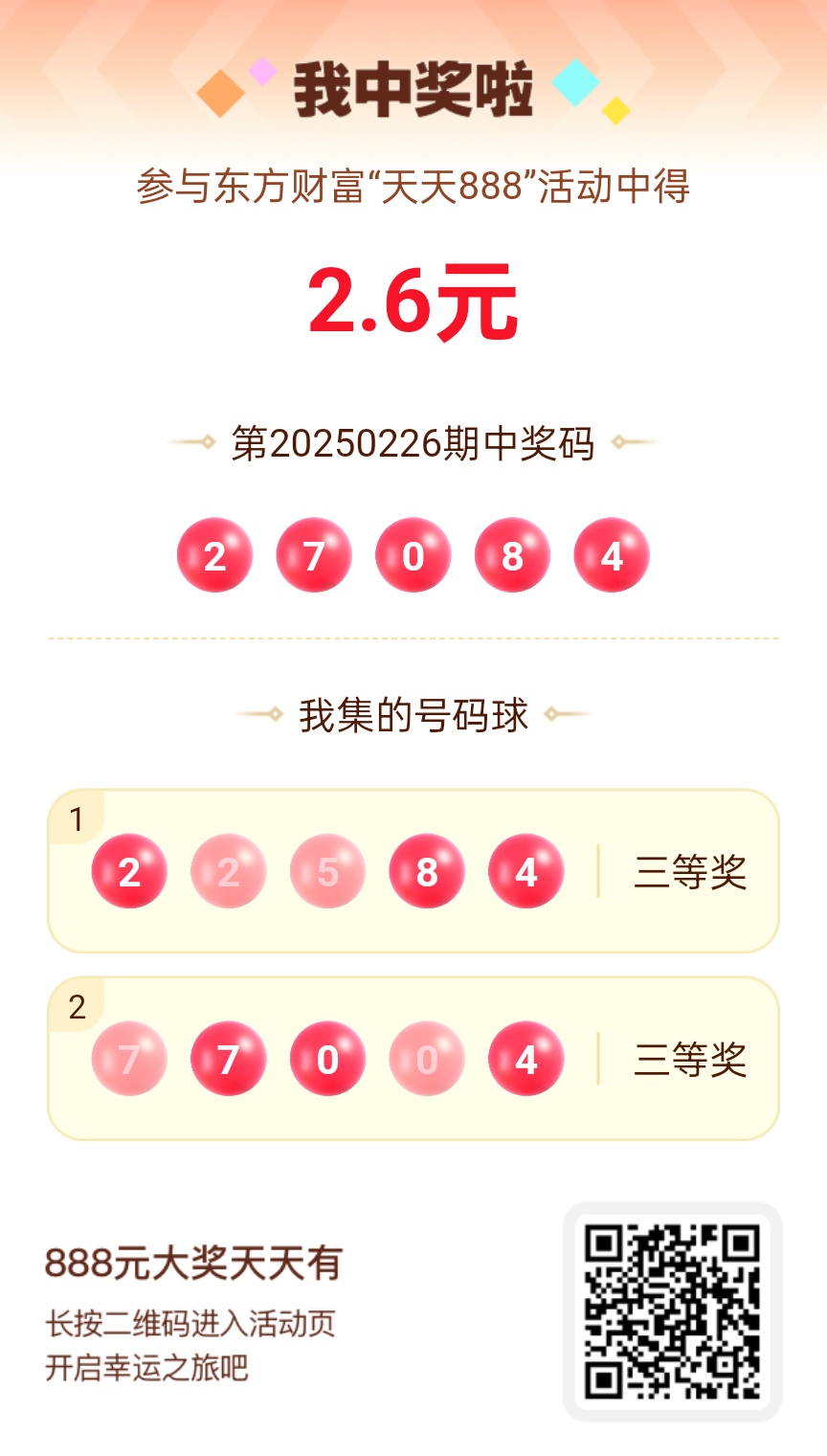 好运来敲门!我在东方财富“天天888”抽奖活动中抽中2.60元红包!快来参与,下一个幸运星可能就是你!