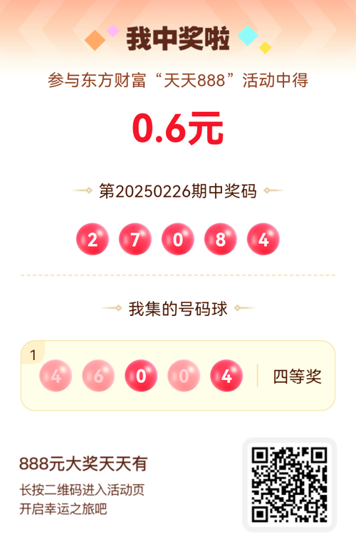 第20250226期天天888活动共1557人中奖,名单如下,请中奖用户在今日15:10前前往活动页面点击【立即领奖】按钮领奖,逾期奖励失效。