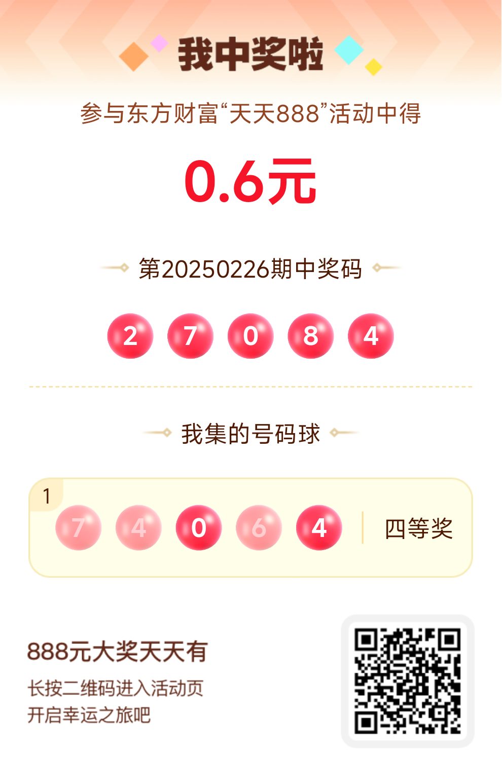 第20250226期天天888活动共1557人中奖,名单如下,请中奖用户在今日15:10前前往活动页面点击【立即领奖】按钮领奖,逾期奖励失效。