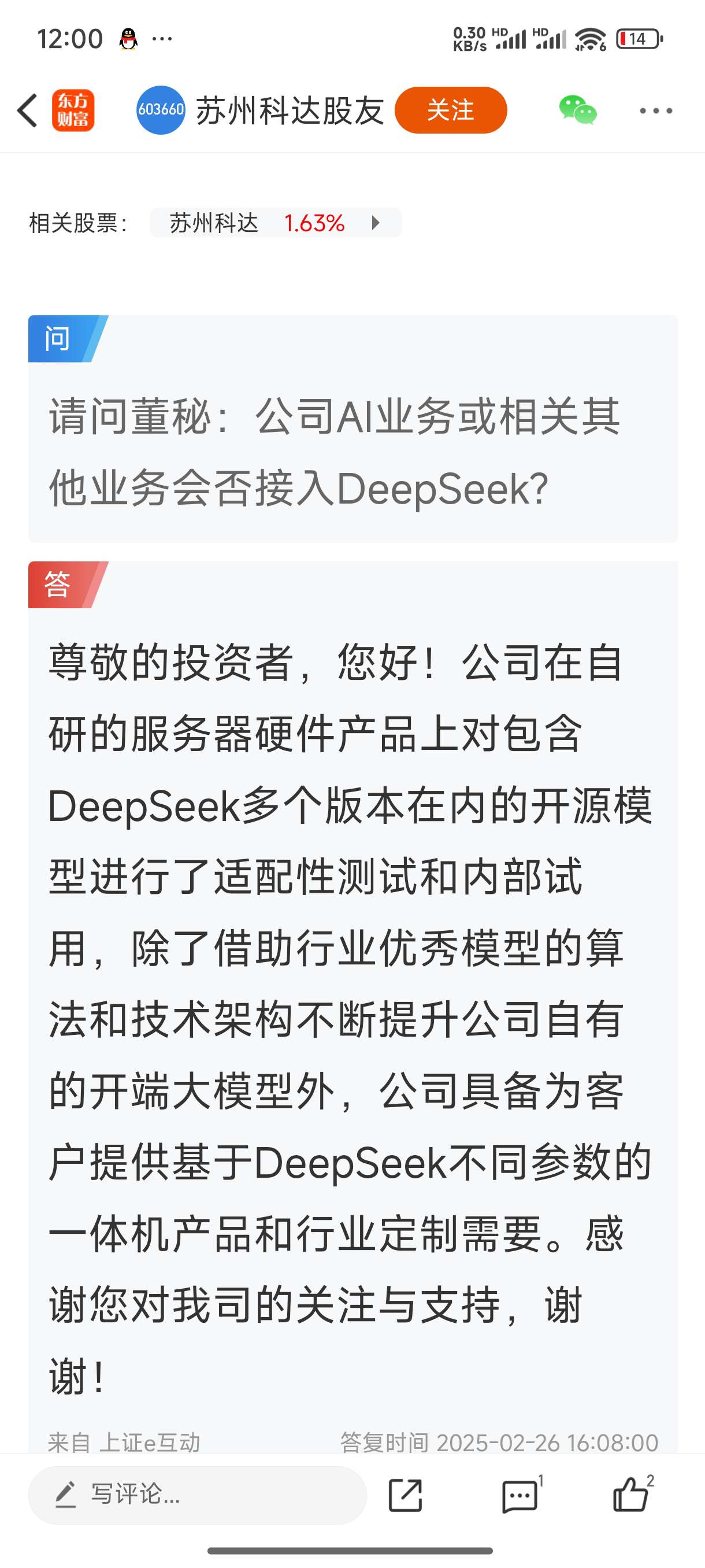 请问董秘:公司AI业务或相关其他业务会否接入DeepSeek?