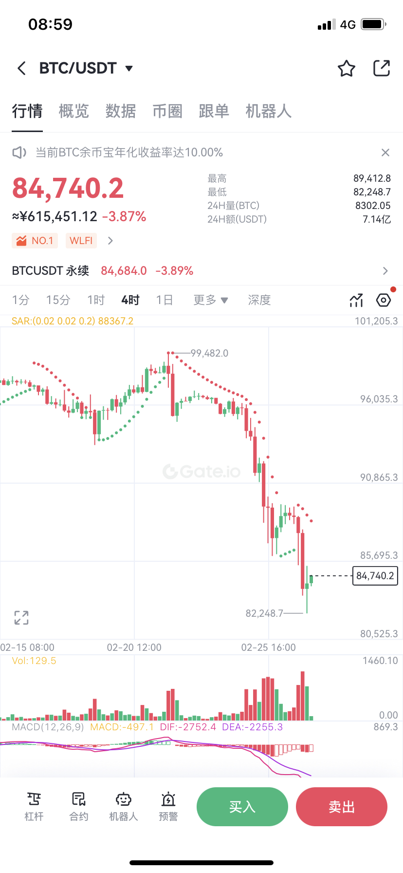 比特币今天的方向:整体方向下跌,目前是小幅度反弹阶段压力位:85800支撑位:7