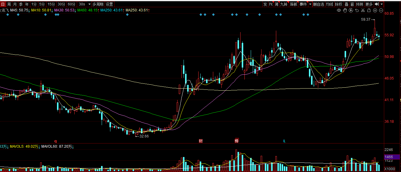 科大讯飞002230:公司是人工智能语音识别概念中的龙头,现在股价来到了五日和十日线附近,短线来看,更像是一个洗盘的动作,短期趋势开始走弱,对他不要有太高的预期,主要是做一个中线的埋伏,行情还没有结束,后面依然还是有望继续冲高,用时间换空间,后面随时都有望迎来爆发。$科大讯飞(SZ002230)$