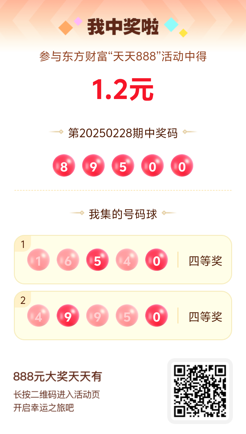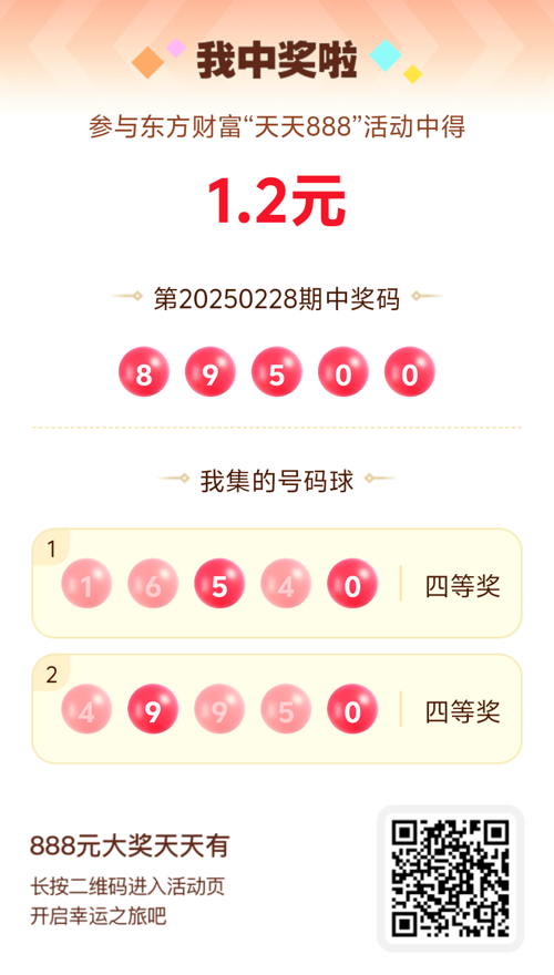 第20250228期天天888活动共1543人中奖,名单如下,请中奖用户在今日15:10前前往活动页面点击【立即领奖】按钮领奖,逾期奖励失效。