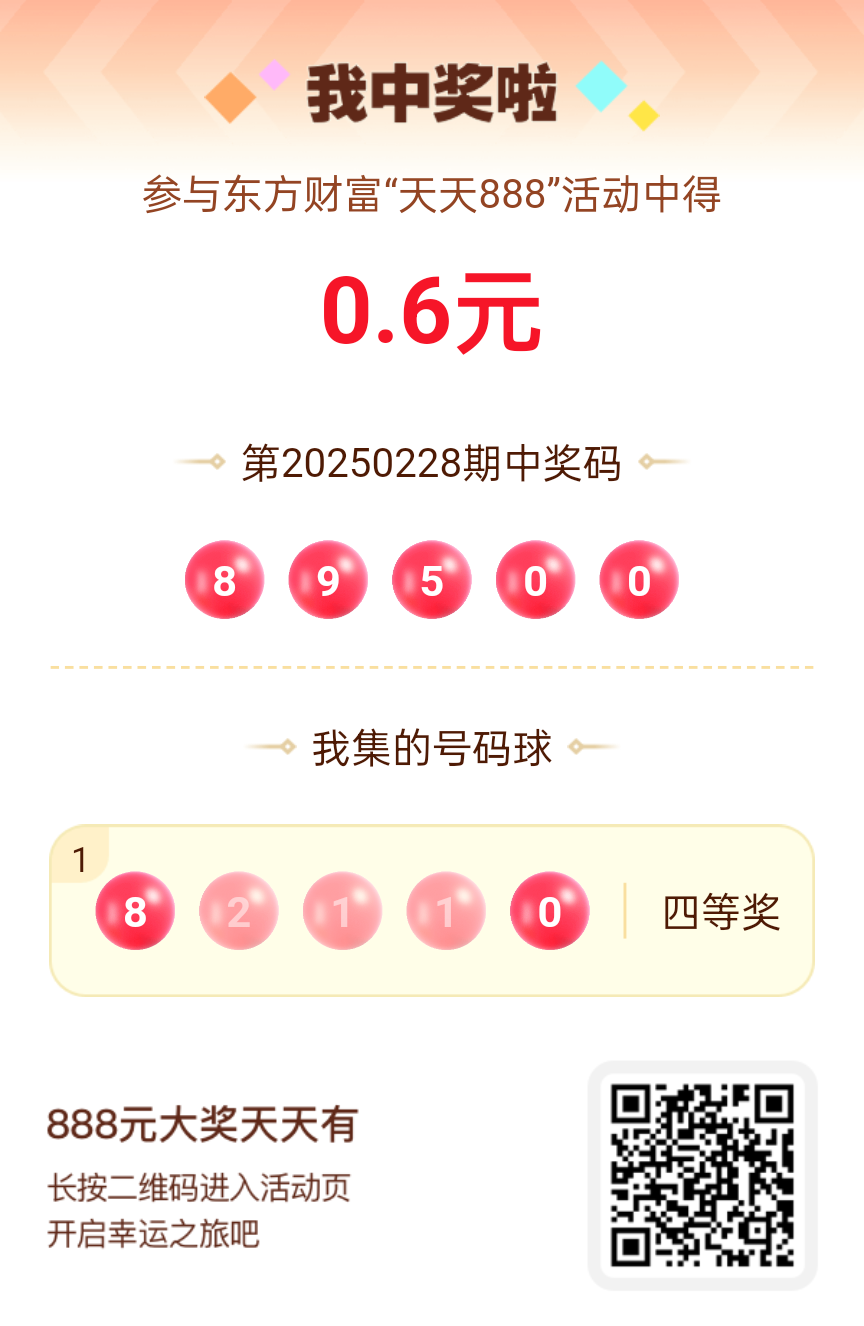 好运来敲门!我在东方财富“天天888”抽奖活动中抽中0.60元红包!快来参与,下一个幸运星可能就是你!