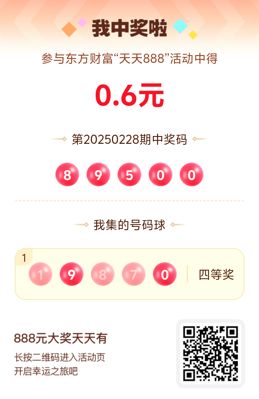 好运来敲门!我在东方财富“天天888”抽奖活动中抽中0.60元红包!快来参与,下一个幸运星可能就是你!