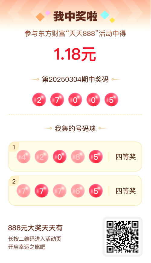 第20250304期天天888活动共1561人中奖,名单如下,请中奖用户在今日15:10前前往活动页面点击【立即领奖】按钮领奖,逾期奖励失效。