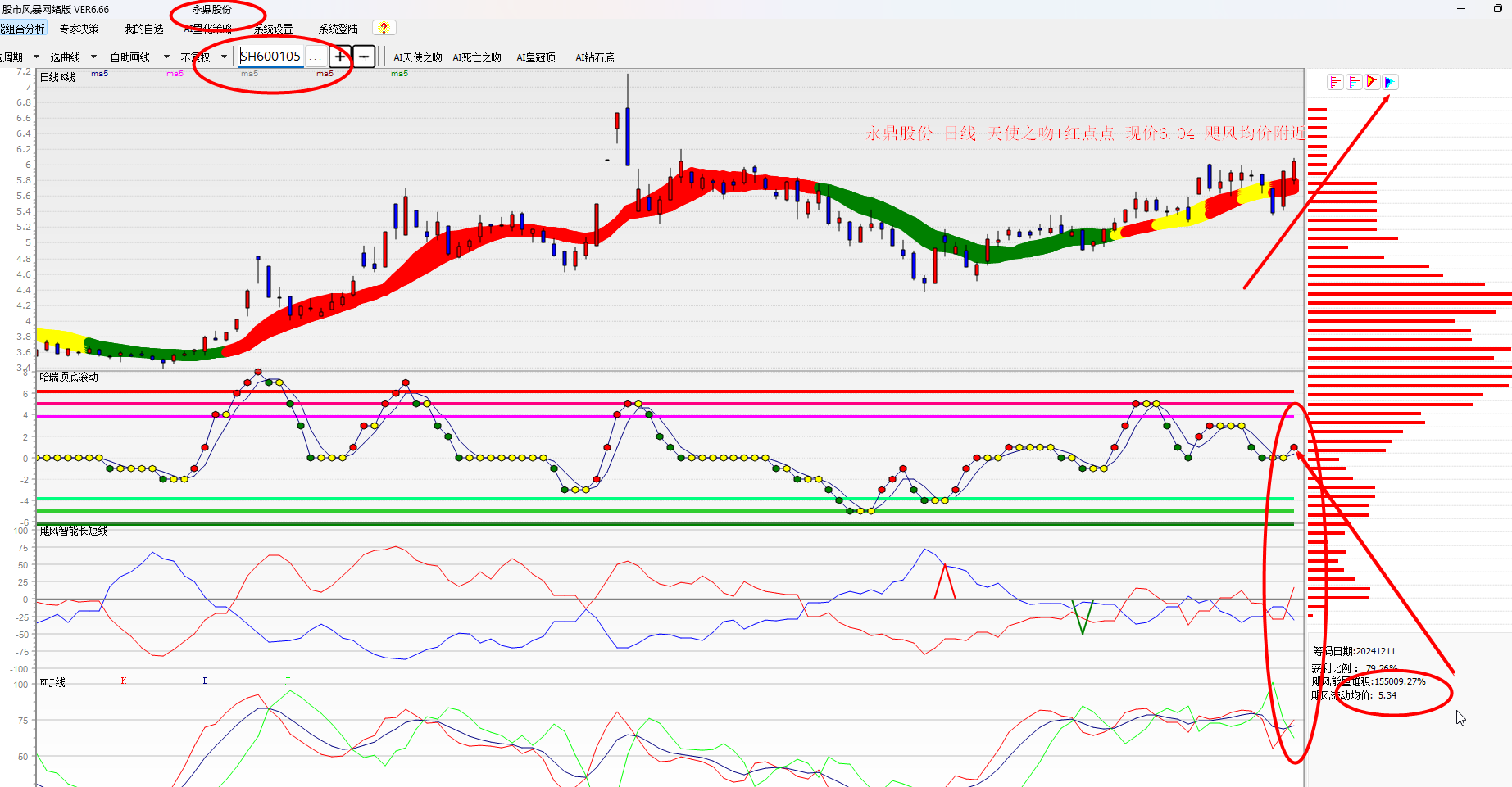 日线周线共振天使之吻+红点点现价6.04飓风均价附近大胆买入爆发力强.