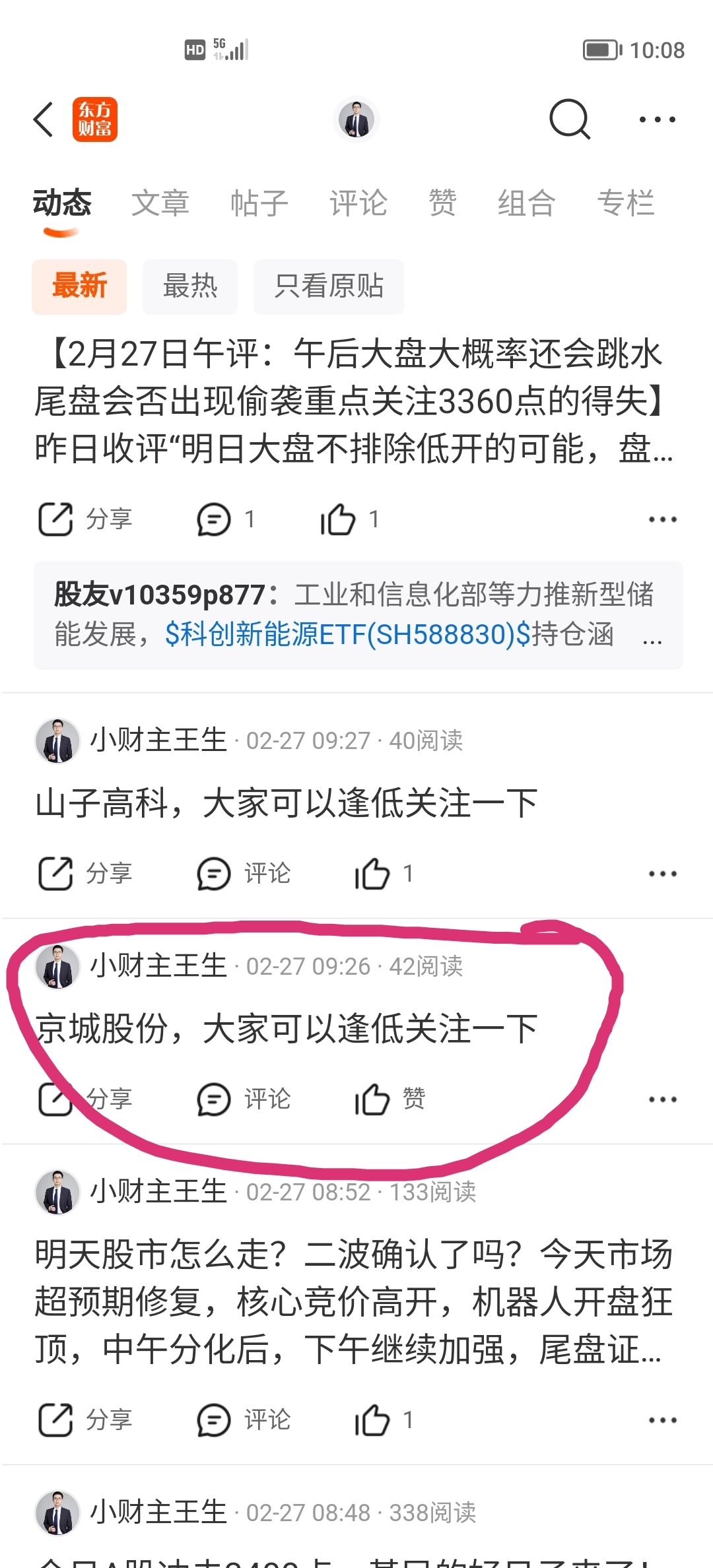 漂亮,上周四在群里面分享的:京城股份,今天继续拉升,跟上了朋友,至少有十个点的盈