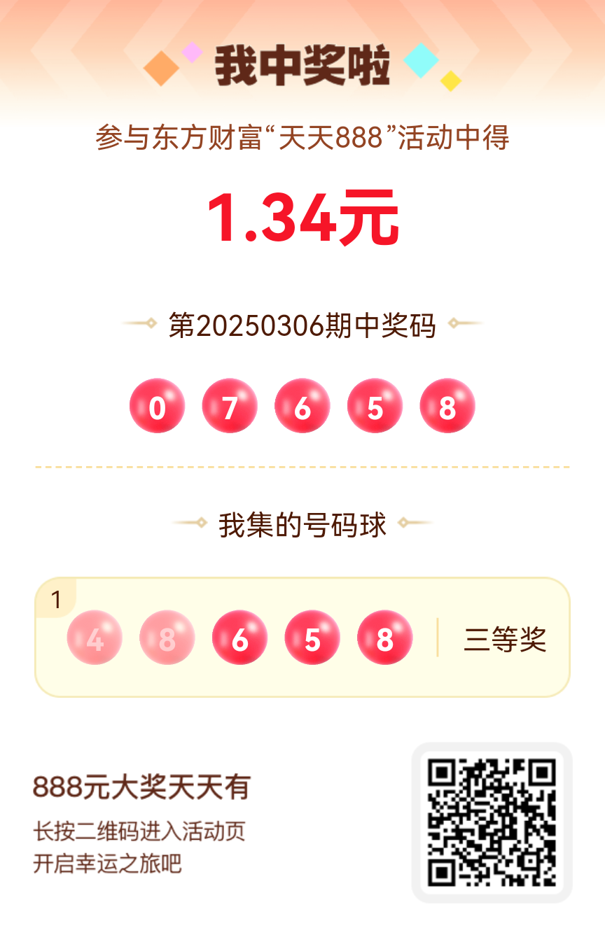 第20250306期天天888活动共1568人中奖,名单如下,请中奖用户在今日15:10前前往活动页面点击【立即领奖】按钮领奖,逾期奖励失效。