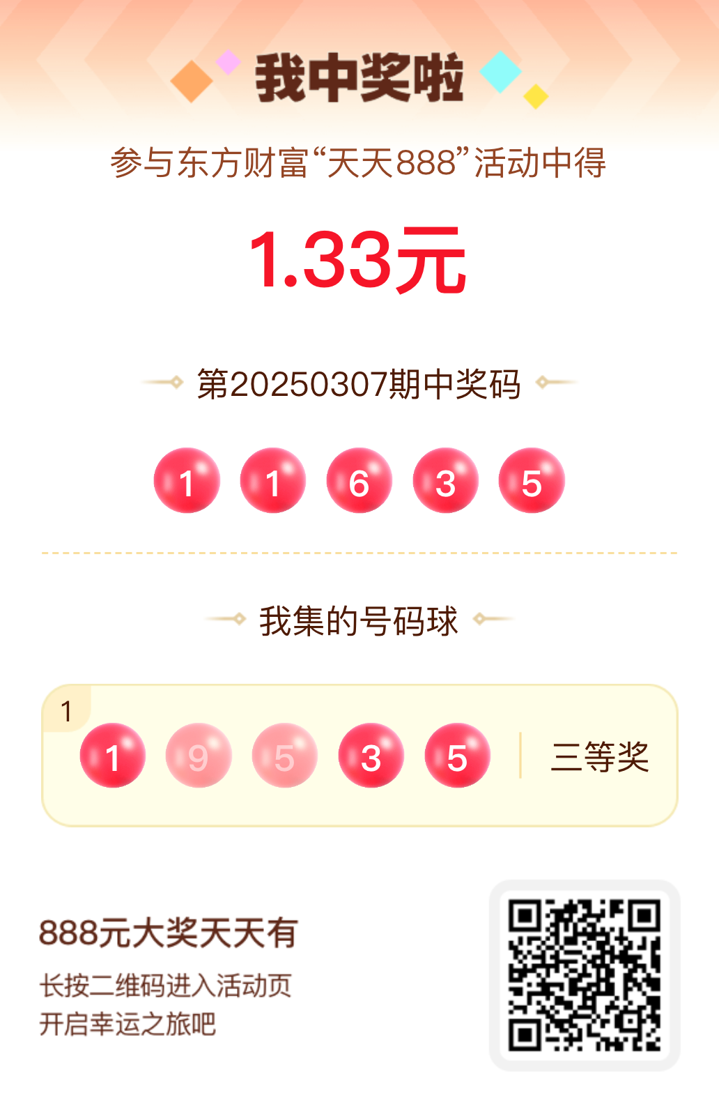 好运来敲门!我在东方财富“天天888”抽奖活动中抽中1.33元红包!快来参与,下一个幸运星可能就是你!