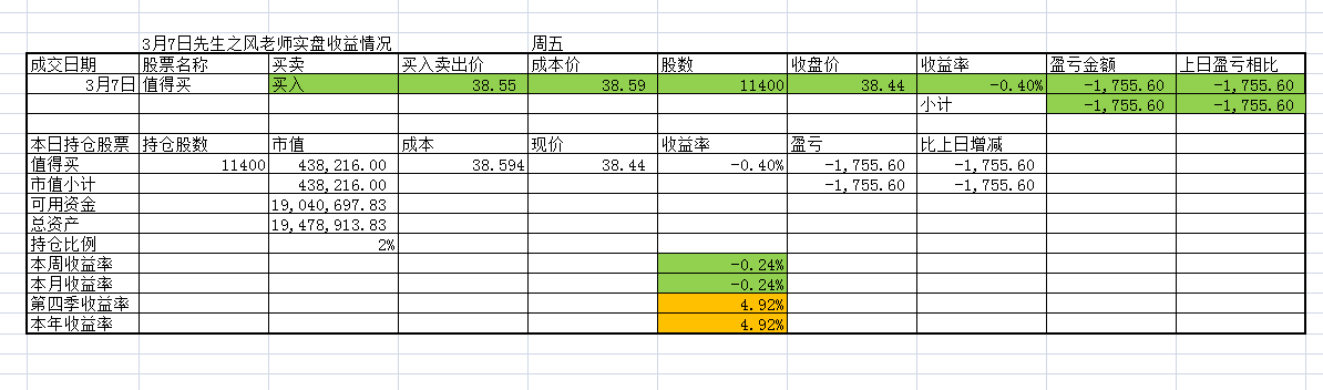 【3月7日先生之风实战复盘】买回了值得买值得卖卖出后,又涨了起来。目前已站在了所