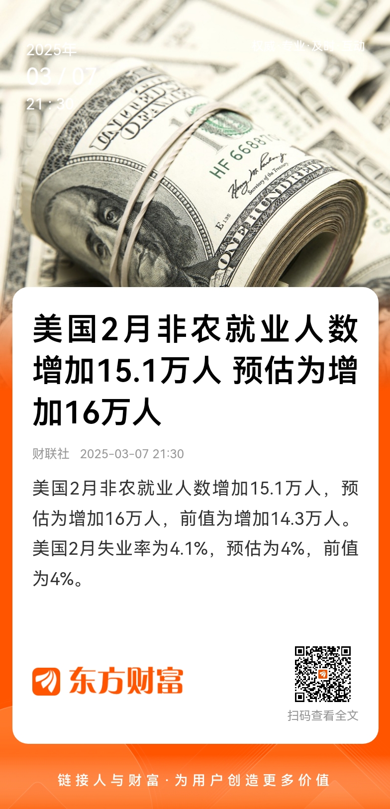 周五(3月7日)美股盘前,美国劳工统计局公布的就业形势报告显示,2月非农略微不及市场预期,失业率意外走高至4.1%。