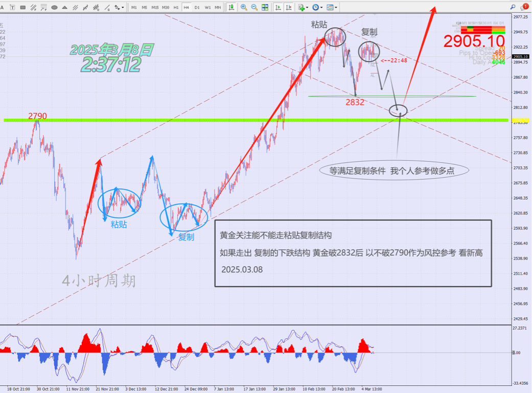 2025-03-08(星期六)黄金关注能不能走粘贴复制结构黄金出图中的如果出图画