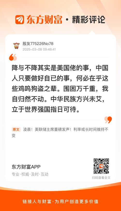 温馨提示: 1.根据《证券法》规定,禁止编造、传播虚假信息或者误导性信息,扰乱证券市场;2.用户在本社区发表的所有资料、言论等仅代表个人观点,与本网站立场无关,不对您构成任何投资建议。用户应基于自己的独立判断,自行决定证券投资并承担相应风险。《东方财富社区管理规定》