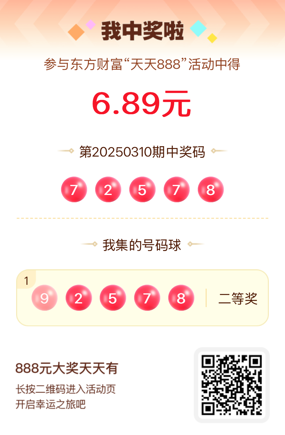 好运来敲门!我在东方财富“天天888”抽奖活动中抽中6.89元红包!快来参与,下一个幸运星可能就是你!