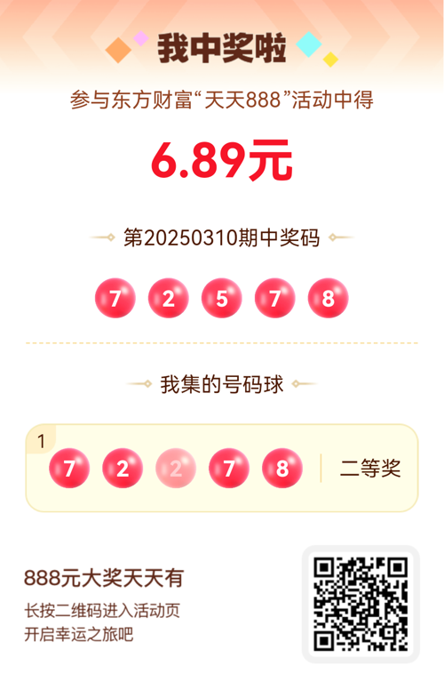好运来敲门!我在东方财富“天天888”抽奖活动中抽中6.89元红包!快来参与,下一个幸运星可能就是你!