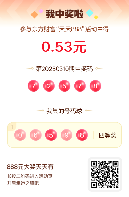 好运来敲门!我在东方财富“天天888”抽奖活动中抽中0.53元红包!快来参与,下一个幸运星可能就是你!