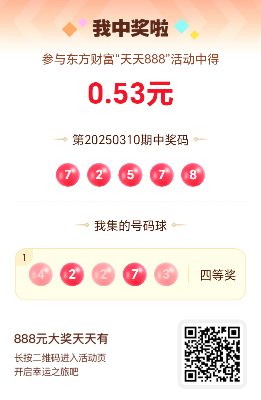 好运来敲门!我在东方财富“天天888”抽奖活动中抽中0.53元红包!快来参与,下一个幸运星可能就是你!