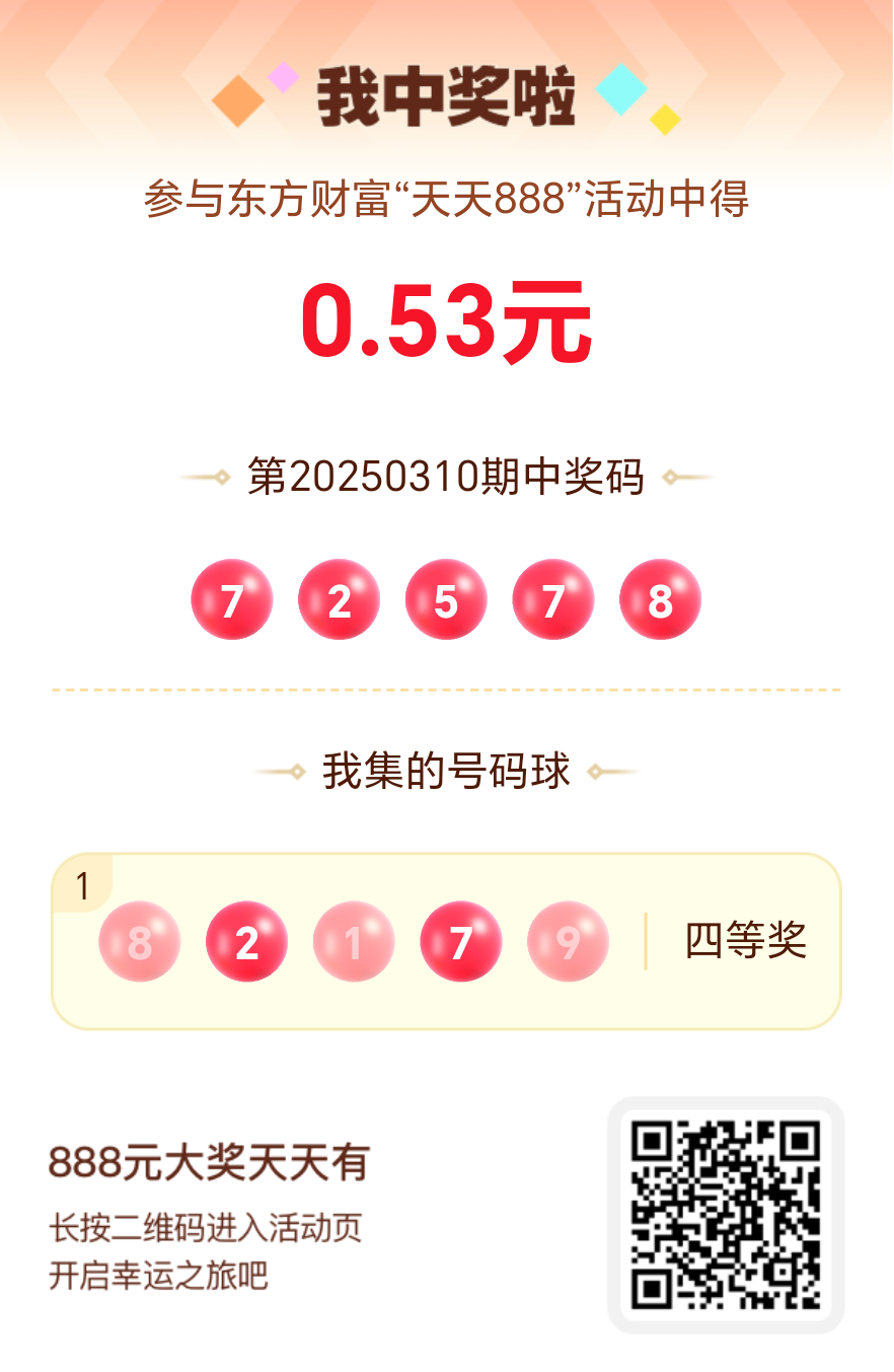 好运来敲门!我在东方财富“天天888”抽奖活动中抽中0.53元红包!快来参与,下一个幸运星可能就是你!