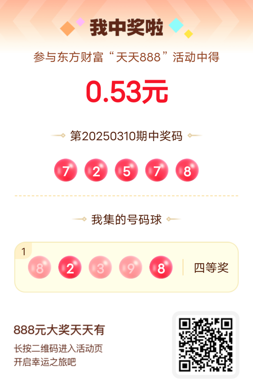 好运来敲门!我在东方财富“天天888”抽奖活动中抽中0.53元红包!快来参与,下一个幸运星可能就是你!