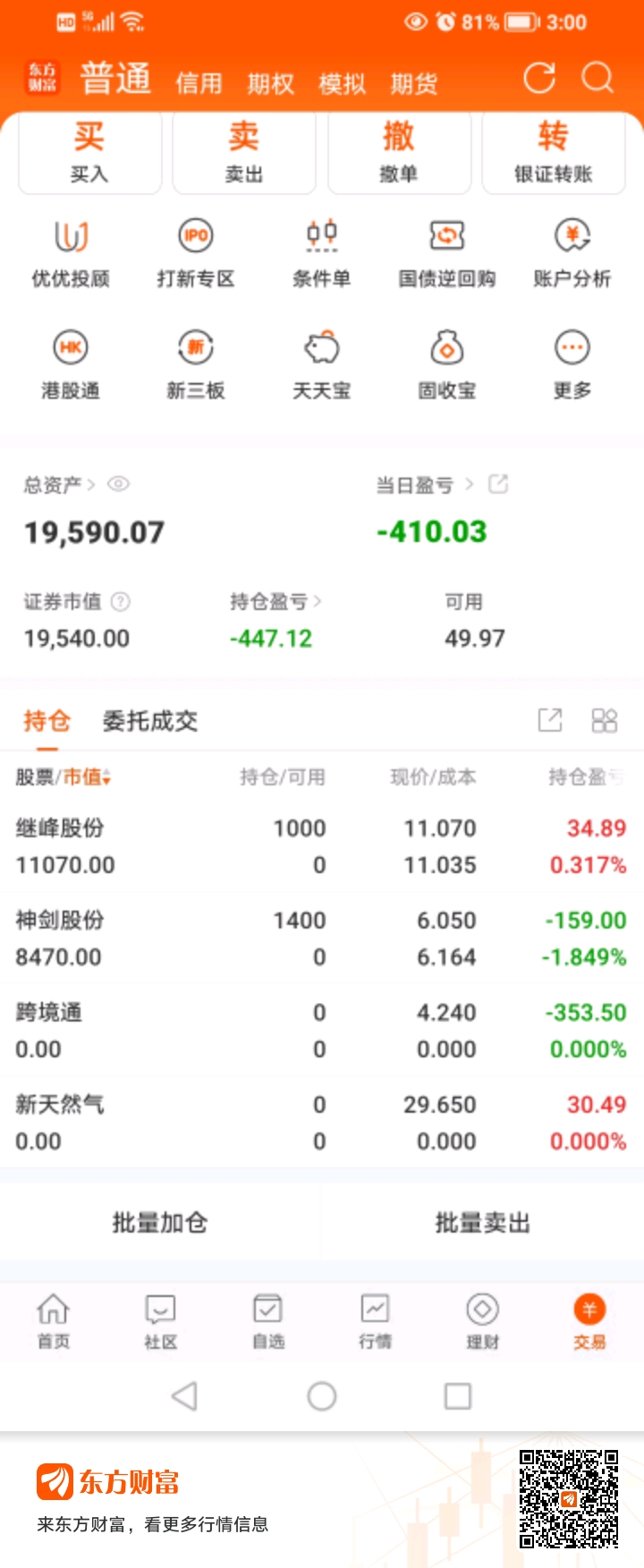 #炒股日记# 今天开局亏损410