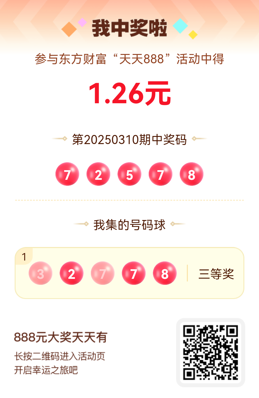 好运来敲门!我在东方财富“天天888”抽奖活动中抽中1.26元红包!快来参与,下一个幸运星可能就是你!