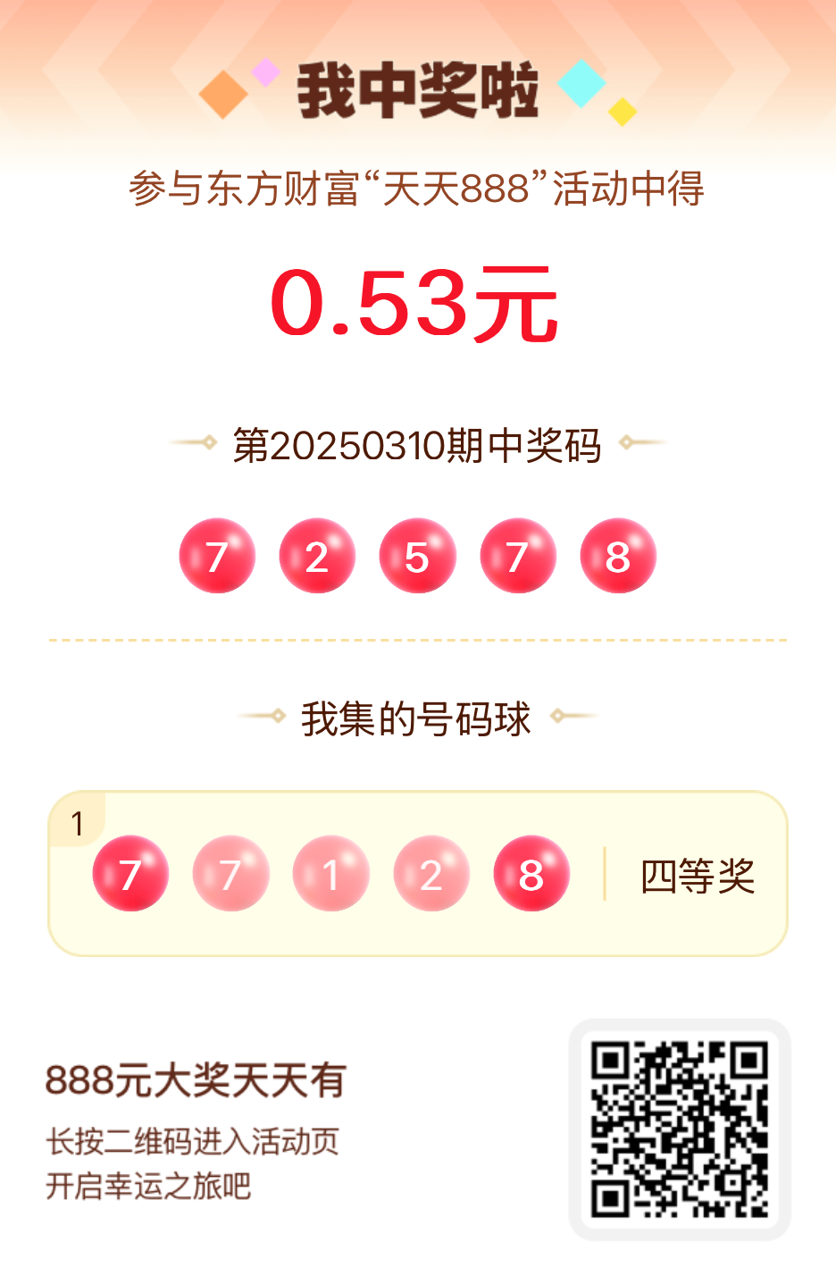 好运来敲门!我在东方财富“天天888”抽奖活动中抽中0.53元红包!快来参与,下一个幸运星可能就是你!