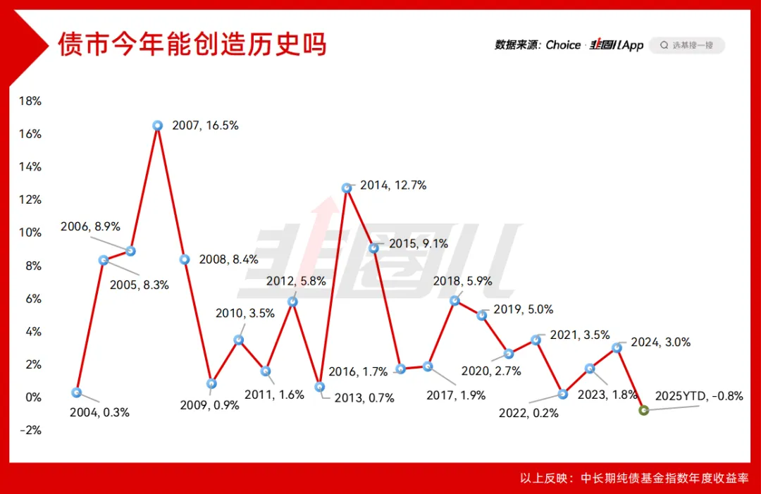 历史上中长期纯债基金指数还没有亏钱的年度,那今年债市会不会创造一个新纪录?