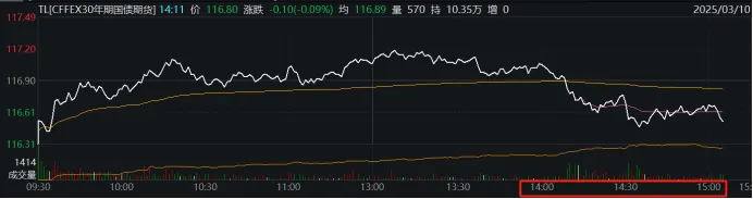 下午1点半之后,寒武纪成交量明显放大,而寒武纪拉升的同时也是TL跳水的时间,股债跷跷板的特点比较明显。