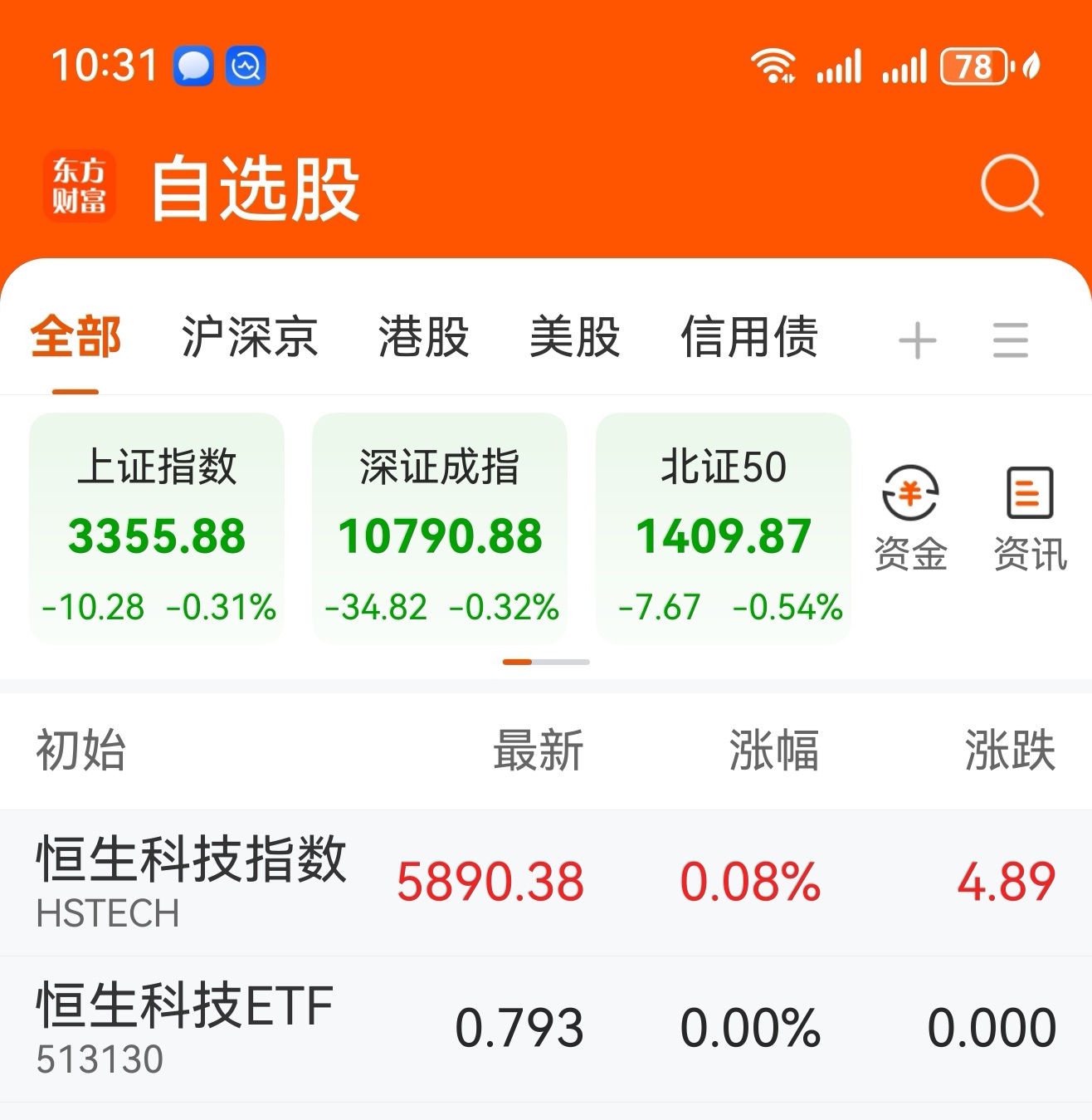 在今天上午10点半之后的时候,观察在之前选择买的恒生科技ETF的净值价格在后来陆