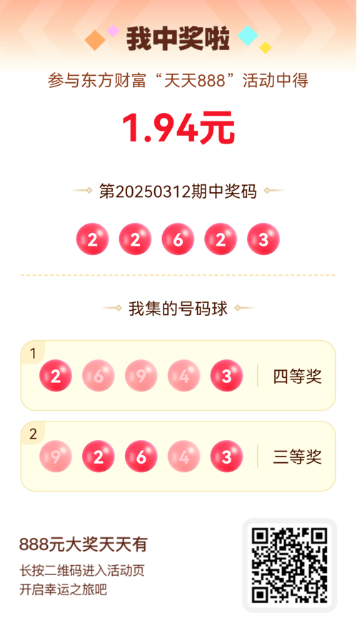 第20250312期天天888活动共1533人中奖,名单如下,请中奖用户在今日15:10前前往活动页面点击【立即领奖】按钮领奖,逾期奖励失效。