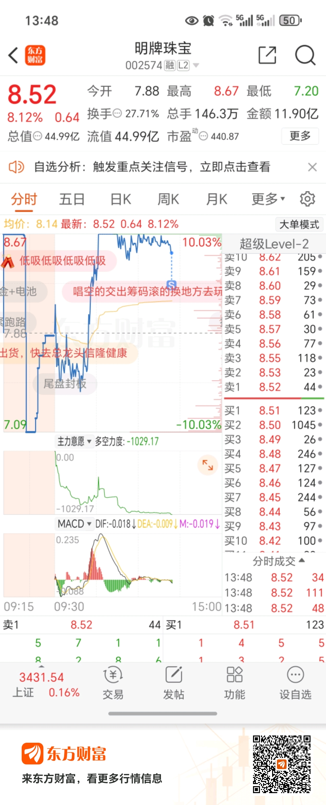 温馨提示: 1.根据《证券法》规定,禁止编造、传播虚假信息或者误导性信息,扰乱证券市场;2.用户在本社区发表的所有资料、言论等仅代表个人观点,与本网站立场无关,不对您构成任何投资建议。用户应基于自己的独立判断,自行决定证券投资并承担相应风险。《东方财富社区管理规定》