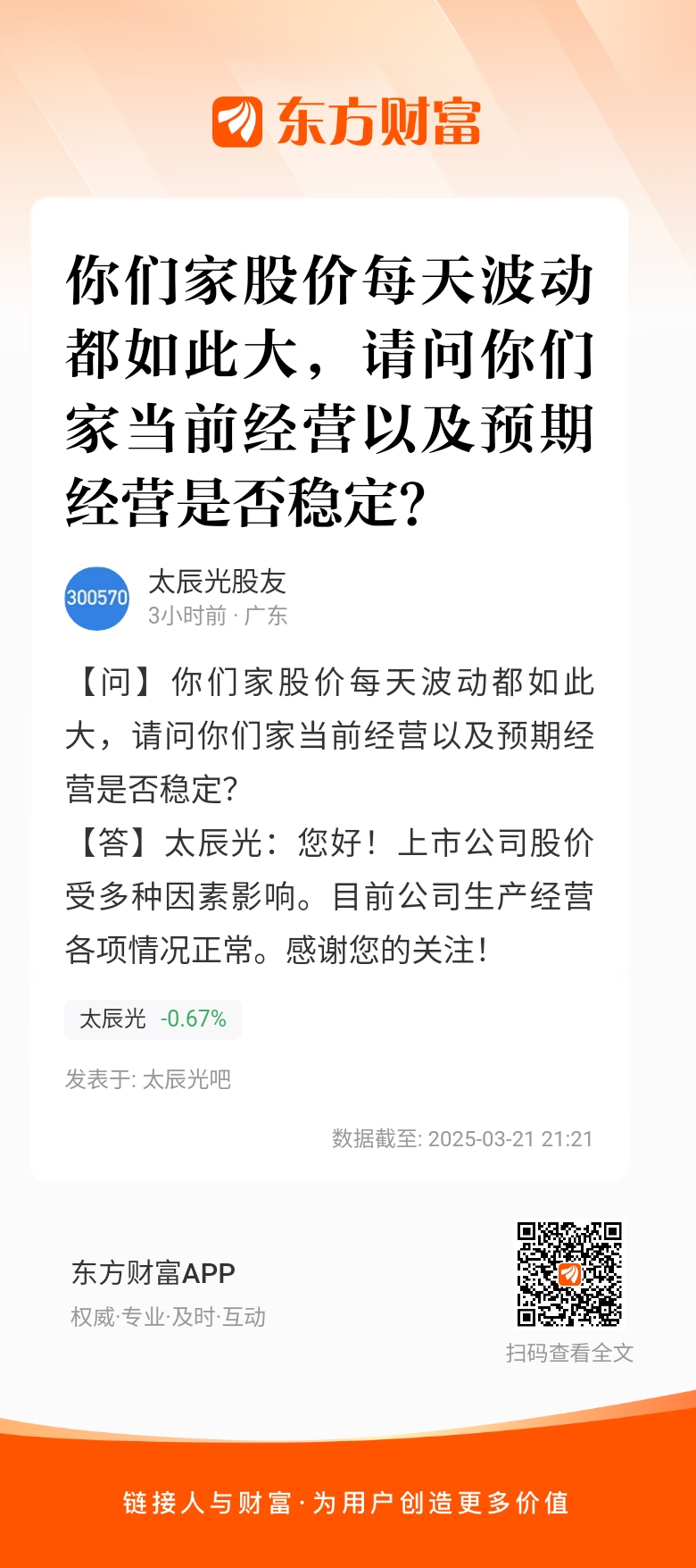 你们家股价每天波动都如此大,请问你们家当前经营以及预期经营是否稳定?