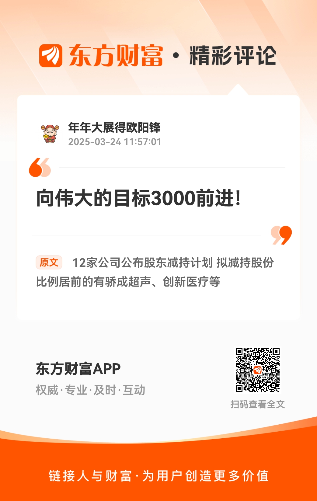 3月24日共有12家公司披露股东减持计划,拟减持股份比例居前的有骄成超声、创新医疗等。