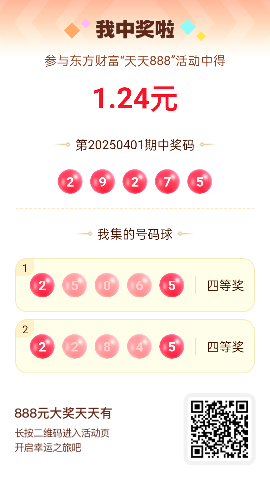 好运来敲门!我在东方财富“天天888”抽奖活动中抽中1.24元红包!快来参与,下一个幸运星可能就是你!