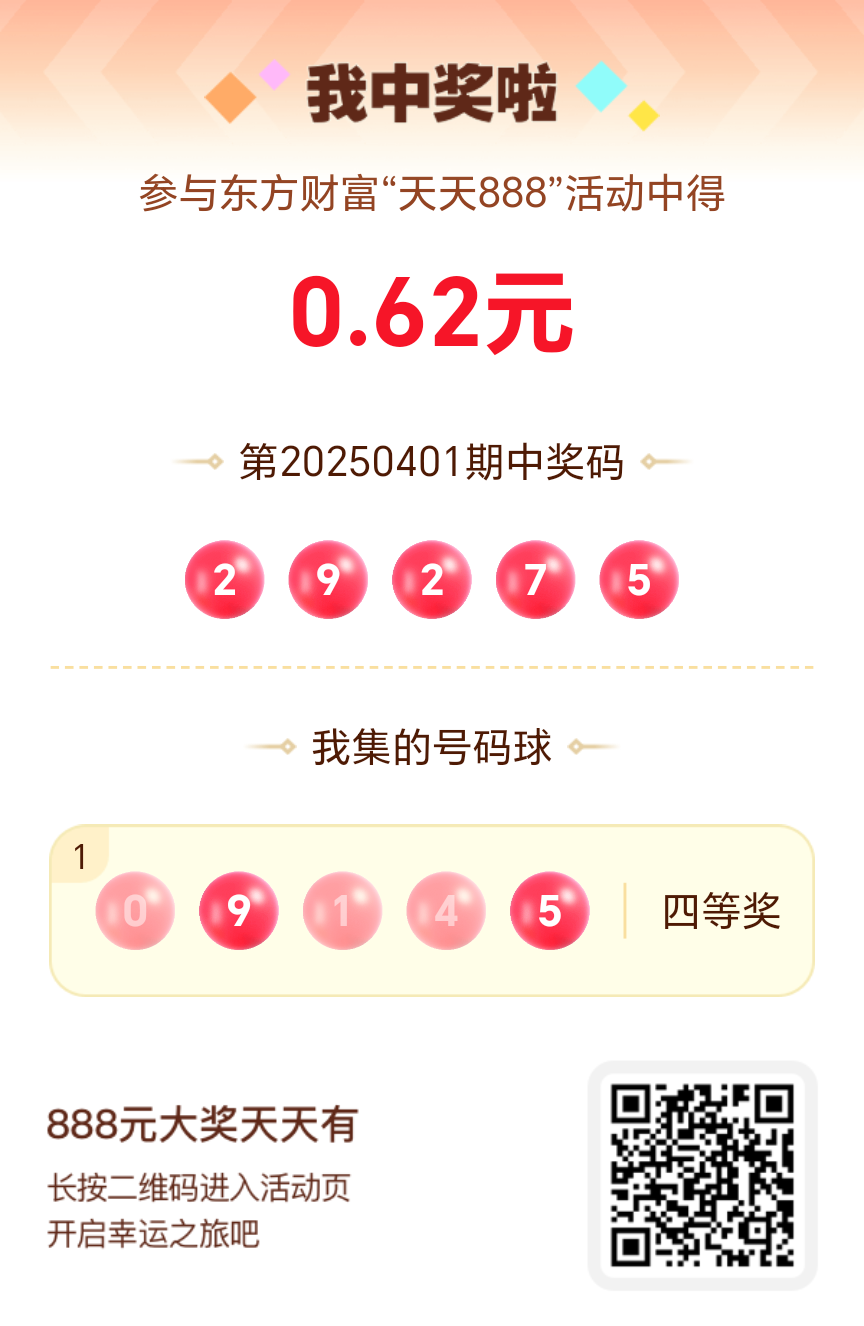 好运来敲门!我在东方财富“天天888”抽奖活动中抽中0.62元红包!快来参与,下一个幸运星可能就是你!