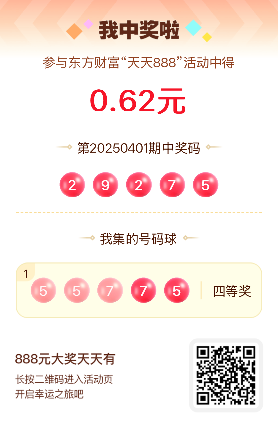 好运来敲门!我在东方财富“天天888”抽奖活动中抽中0.62元红包!快来参与,下一个幸运星可能就是你!