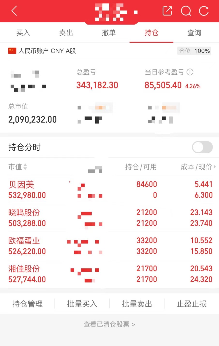 今日持有:
