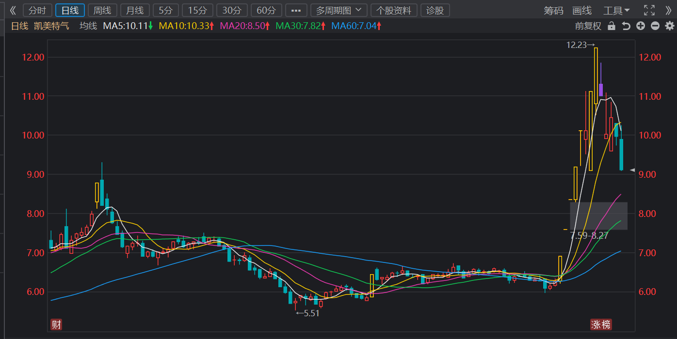 凯美特气:昨天这跟放量跌停的大阴线,着实给追高的投资者浇了盆冷水。早盘还在年线上方挣扎,午后却像断了线的风筝般坠落,28.6%的换手率里藏着多少带血的筹码。盘中两次撬板更像是困兽之斗——13:05那波万手单强拉翻红,转眼就被3.8万手压单拍回地板,活脱脱上演了一出老乡别走的戏码。 技术面上,这根阴线直接贯穿了半年线、年线两道重要防线,MACD在零轴下方二次死叉,像把悬在头顶的达摩克利斯之剑。不过尾盘竞价时突然放出的3682手买单,又给今天留了丝念想——若是能在17.8元平台附近缩量企稳,或许还能当个情绪反抽的载体。
