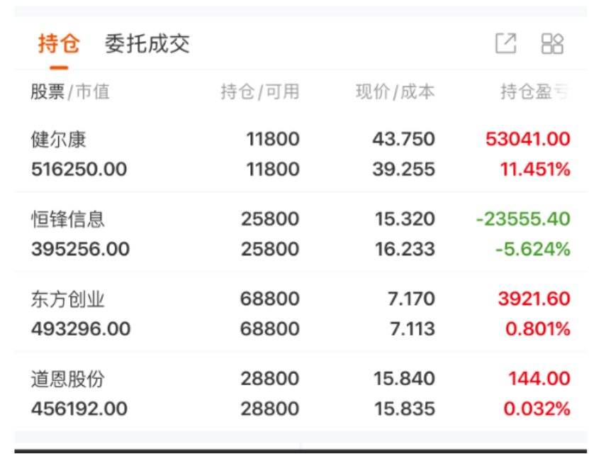 财哥4月23日早评文章有介绍,24日早盘有打卡记录,目前算是接力成功。肯定有人会问,这是个大烂板,而且是个天量板,后面走不远之类的问题。首先财哥认为,当前高标退潮期,高送转行情或能异军突起。其次,在23日文章有提及健尔康的压力位等技术位,这里简单说,目前健尔康的压力无,资金拉升轻。明日计划:尾盘不封板就走,封板则留。财哥都是比较肯定的操作,兄弟们可以跟上节奏,一起发财,谁让财哥是雷锋呢。