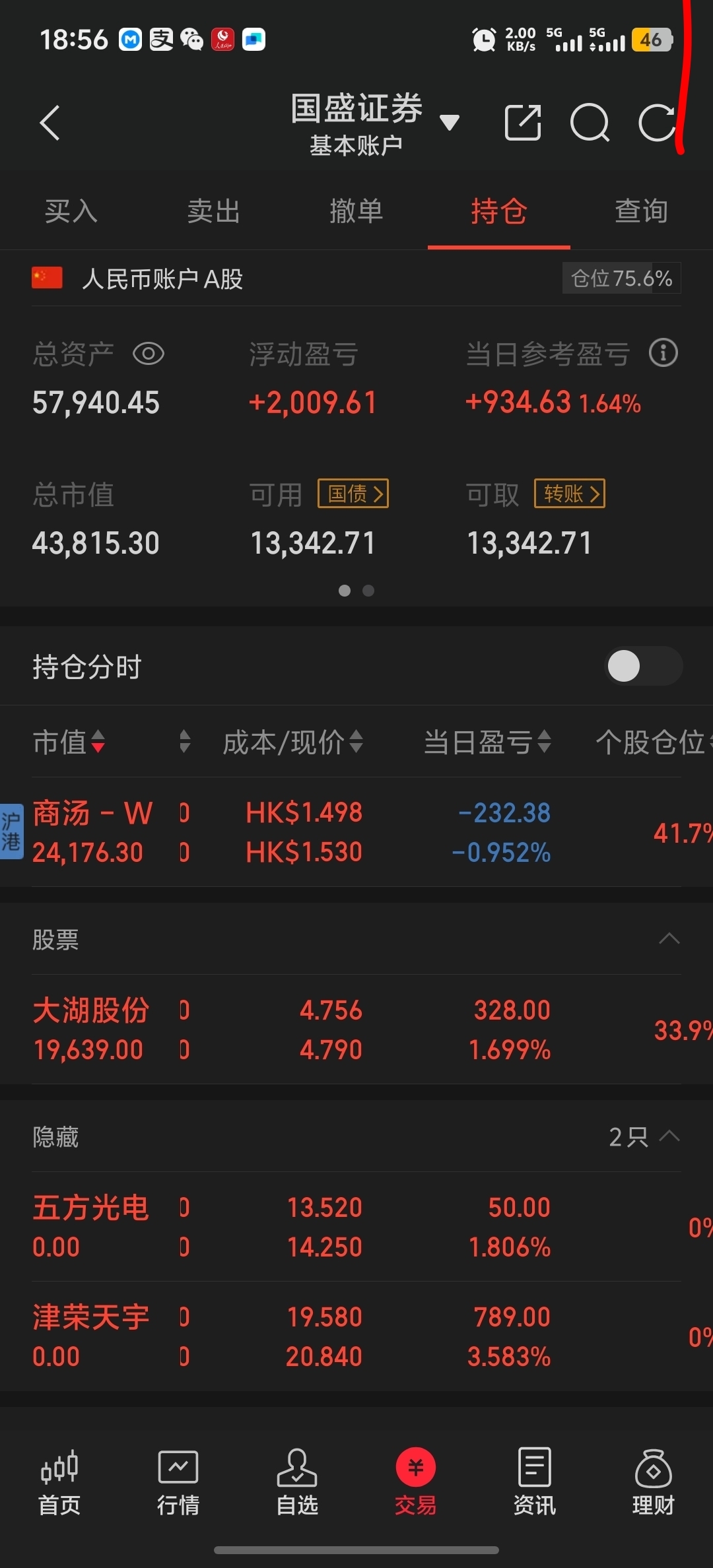 今天兄弟们都赚麻了吧。津荣死活突破不上去感觉不行清仓了,调了一点跟商汤谈恋爱。逐步减仓等一个回踩