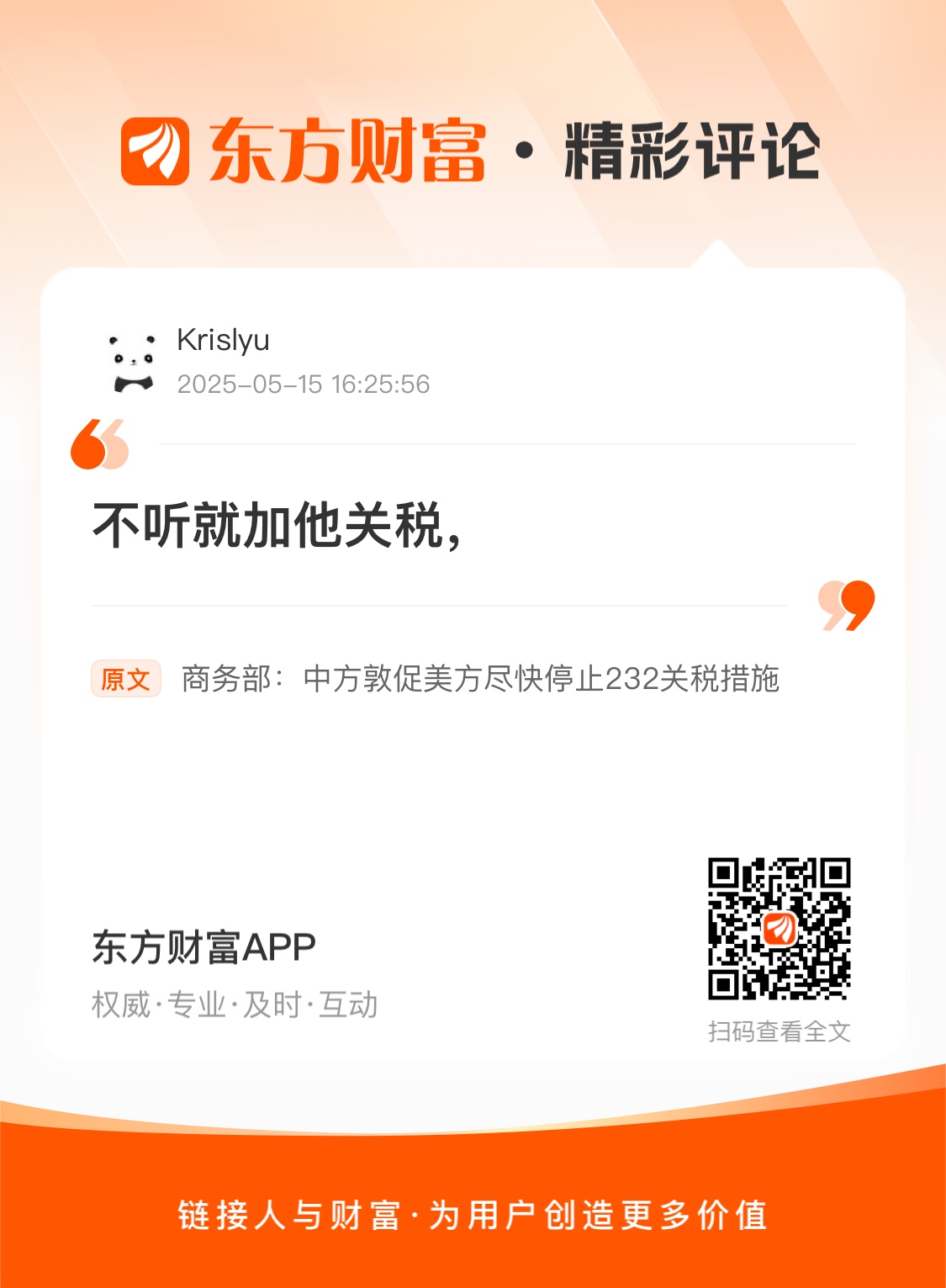 不听就加他关税,我在《商务部:中方敦促美方尽快停止232关税措施》的评论获得了大