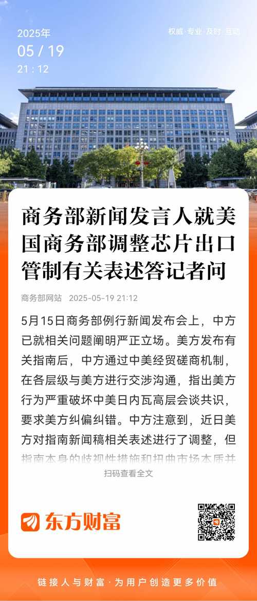 有记者问:美国商务部网站调整了其5月12日发布的AI芯片出口管制指南新闻稿相关表述,将“在世界任何地方使用华为昇腾芯片均违反美国出口管制法规”调整为“警告业界使用中国先进计算机芯片,包括特定华为昇腾芯片的风险”。请问中方对此有何评论?