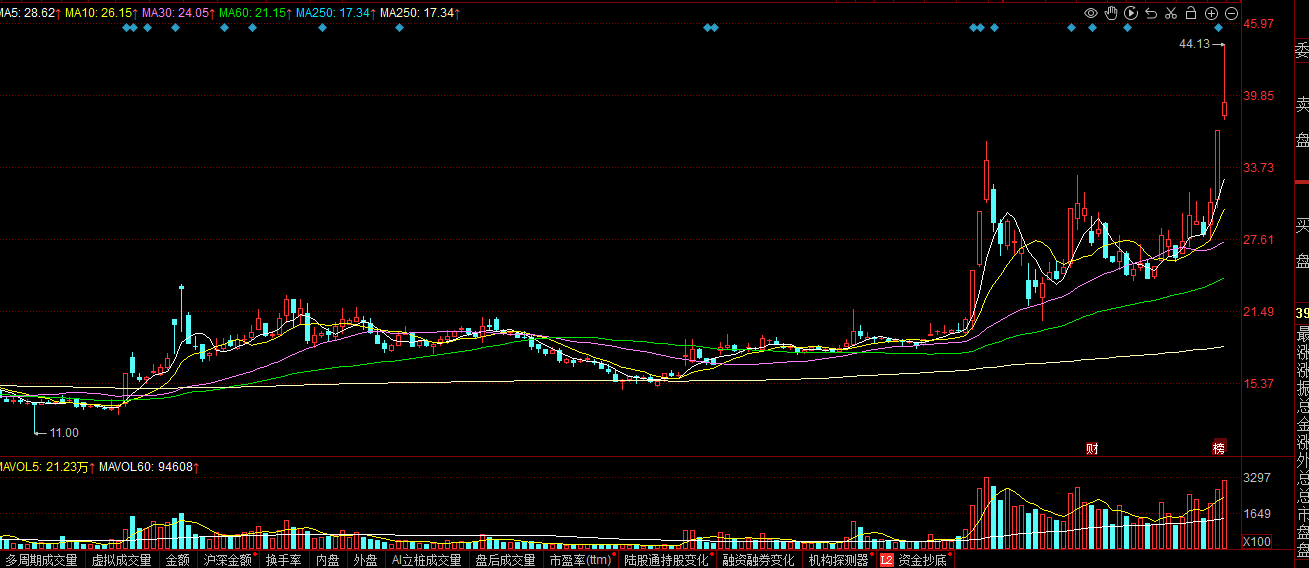 江天化学300927:甲醛+可用于生产季戊四醇+国企概念股,公司深耕精细化工领域,主营产品涵盖颗粒多聚甲醛、高浓度甲醛等,广泛应用于合成树脂、胶粘剂、混凝土外加剂、农药除草剂、电子化学品,以及纺织染整助剂等多元领域。周二的走势还是比较符合预期的,技术面来看,近期的走势是一个平台突破的走势,走的还是比较稳的。现在上方的抛压也是比较小,后面新一轮的行情有望开启。