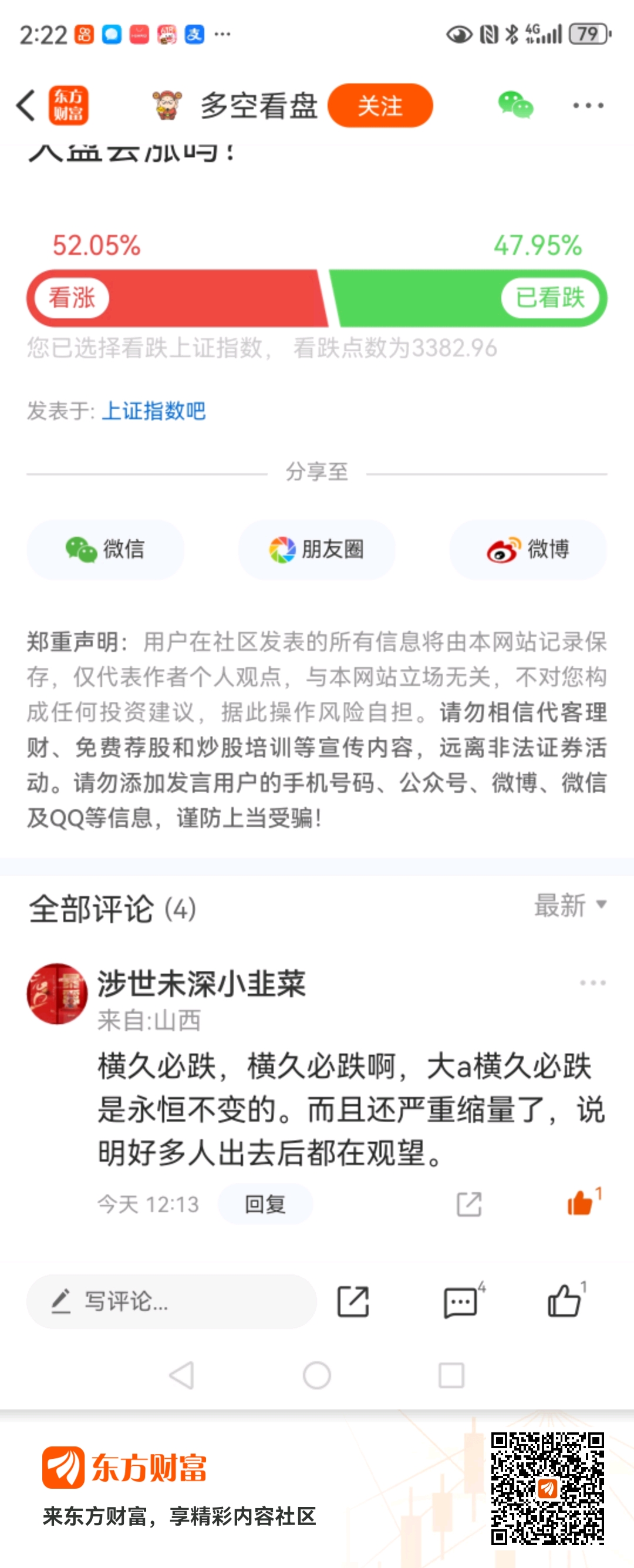 温馨提示: 1.根据《证券法》规定,禁止编造、传播虚假信息或者误导性信息,扰乱证券市场;2.用户在本社区发表的所有资料、言论等仅代表个人观点,与本网站立场无关,不对您构成任何投资建议。用户应基于自己的独立判断,自行决定证券投资并承担相应风险。《东方财富社区管理规定》