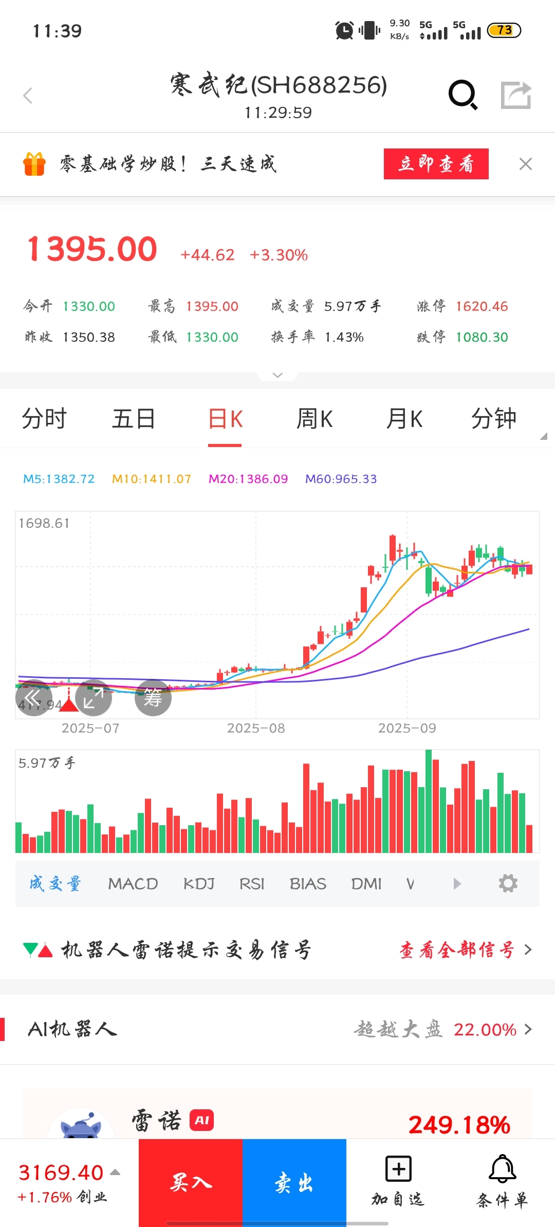 买入寒武纪持仓2天后就给卖出了,胆小的风险试探者对此大家有什么更好的对于看涨的技