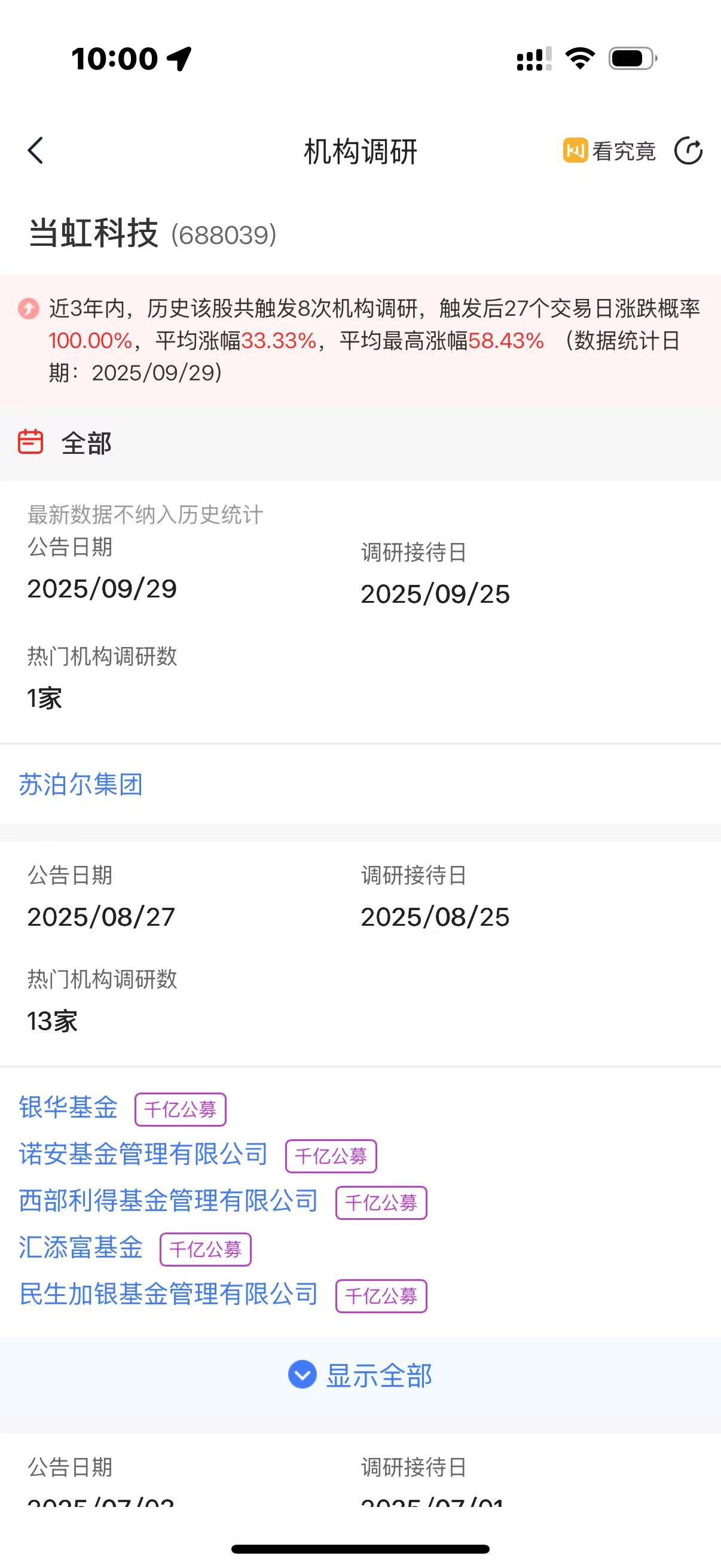 当虹科技公布接受多家机构调研,这票历史接受多次调研事件,但每次调研后股价上涨的概