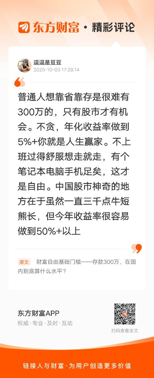 根据“25倍财富自由法则”,如果你一个月开支1万、一年的开支是12万,财富自由的基础门槛刚好是300万。因此,存款300万是一个被反复讨论却鲜有定论的数字。