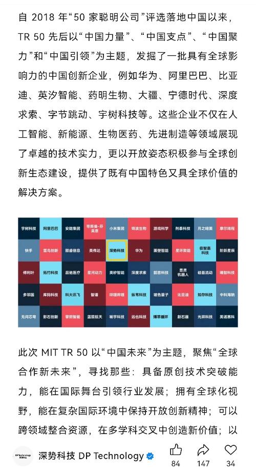 着眼“中国未来”,这些企业不仅在人工智能、新能源、生物医药、先进制造等领域展现出卓越的技术实力,更以开放姿态积极参与全球创新生态建设,提供了既具中国特色又具全球价值的解决方案。这些入选企业的技术路径、战略选择与落地成果,不仅是对过去一年科技创新的总结,更成为观察未来十年科技走向的重要样本和风向标。值得强调的是,这些创新成果并非某一国家或区域的专属成就,而是全球智慧碰撞与协作共创的结晶。